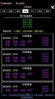 由于充值奖励的属性加成以及氪金强化带来的提升,后续的核心玩法将聚焦于升级。材料掉落仅需完成图鉴打造即可,每套图鉴可提供2%的四维属性加成。建议尽量让图鉴进度与等级保持同步,避免出现等级领先图鉴进度的情况,否则回头补打图鉴材料会降低升级效率。