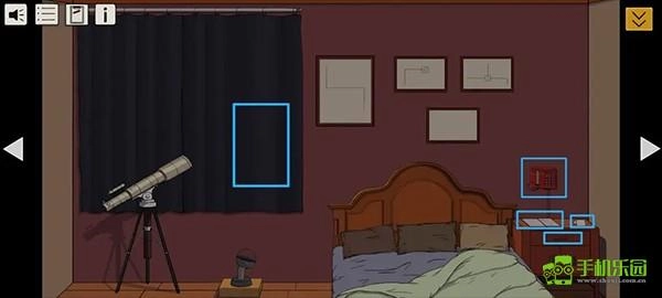 点击墙上那个破碎的相框,就能看到后面藏着的温度计。把“纽扣电池”装进去后,温度计就能正常工作了——只要室温显示26度,就可以去睡觉啦。