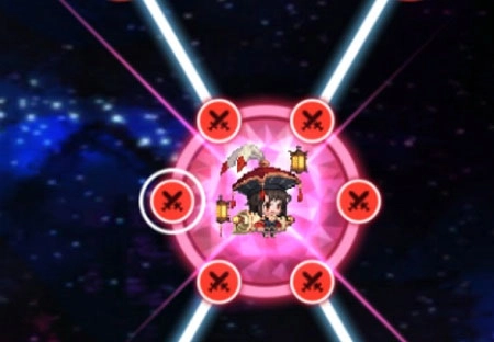 外围的一圈节点均为普通节点,其中红色、蓝色和绿色分别对应攻击力、防御力与生命值。