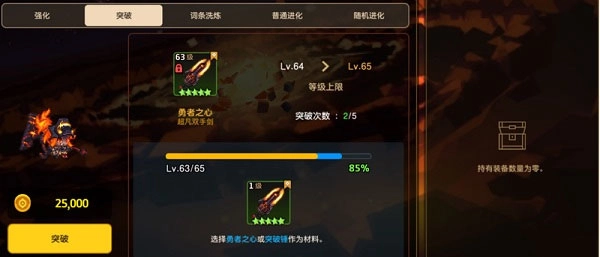 角色满星后,可消耗英雄水晶完成突破,突破后英雄的等级上限将被解锁。
