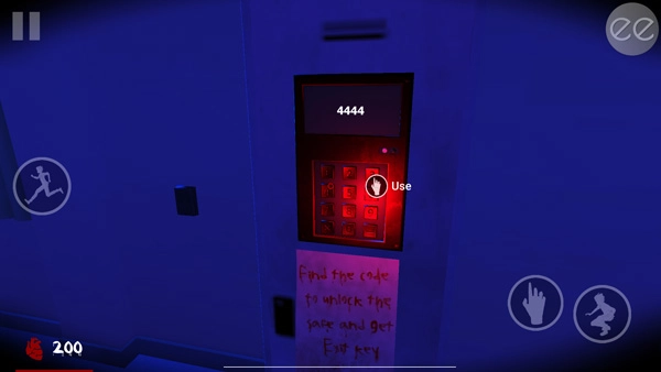 下一层楼进入储藏室打开电闸(否则教室会一片漆黑,无法看清密码),之后能在ABCD四条走廊以及出口大门两侧的鞋柜里找到鞋子(穿上可免疫玻璃渣),接着就可以开始寻找四把钥匙了。每把钥匙对应一间上锁的教室,每间解锁后的教室后方的黑板上都藏着一个密码。