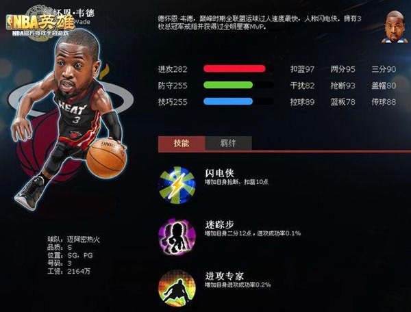 现实里的韦德,是个顶天立地的真男人,更是重情重义的好兄弟。巅峰时期的他,有着联盟第一快的称号,那神出鬼没的迷踪步,不知戏耍、晃翻过多少对手。而在游戏中,现版本里韦德作为分卫,数值仅次于科比,是妥妥的第二人。