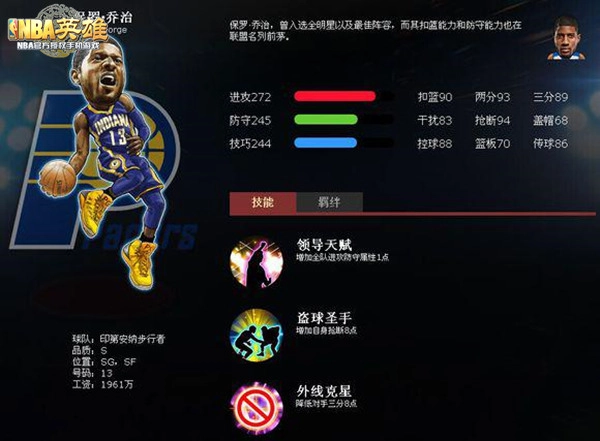 保罗堪称2013年最大的黑马,他那令人窒息的防守能力让人印象深刻。在《美职篮英雄》这款游戏里,保罗依旧是备受追捧的热门球员,要是能同时拥有他和伊戈达拉,就再也不用怕对手的三分球“duang”地一下轻易命中了!
