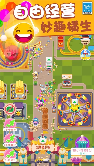 欢乐游戏城是一款趣味十足、充满魔性又带点搞怪的游乐场模拟经营游戏。在游戏里,玩家将拥有一座大型游乐场,身为管理者,需要规划建造各类有趣的游乐设施,像大摆锤、海盗船之类的,以此吸引更多顾客前来体验游玩。