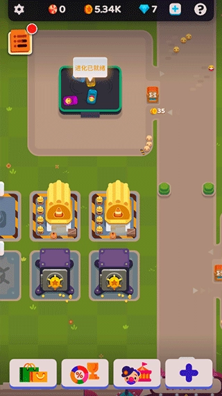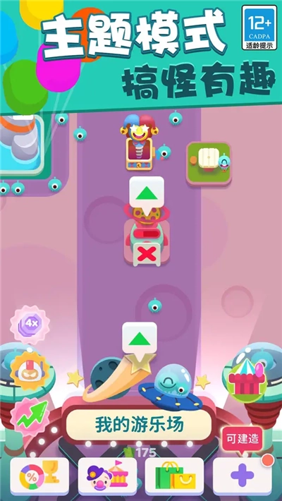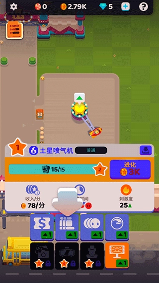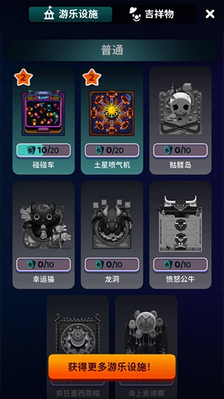 点击下方的按钮,就能进入查看众多待解锁的娱乐设施;而游乐场里的宝箱,则可以抽取到不少稀有的娱乐设施。