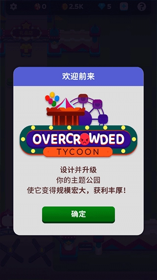 点击“确定”建设并升级自己的主题乐园;