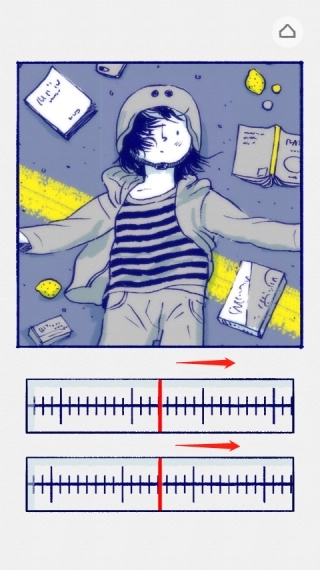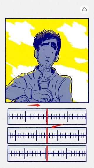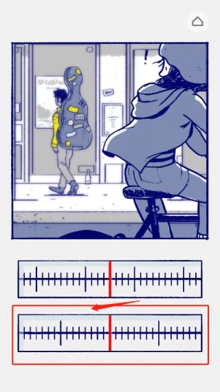 故事的开头,小女孩察觉到身后有车辆驶来,可画面却十分模糊。这时,我们需要把上方的刻度向右滑动,直到肉眼看起来最清晰的位置——通常是刻度上最长的那根线,或者中间的那根线。接着,再将下方的刻度尺向左滑动,等整个画面都变得高清后,就能进入下一个画面了。