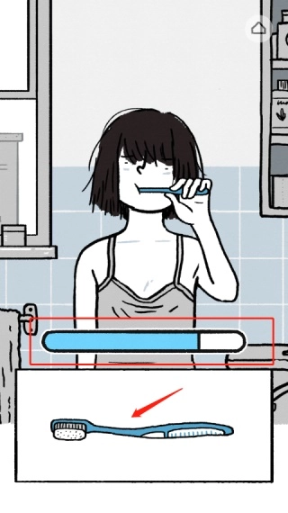 睡过头啦,得抓紧时间刷牙,点击下方的牙刷并左右摇晃,直到进度条填满就好啦。