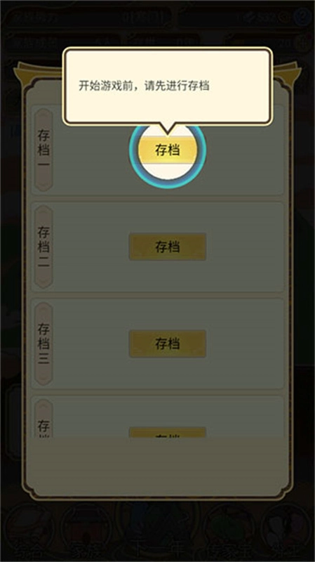 进入游戏后,要先点击存档,之后每年都会自动存档;