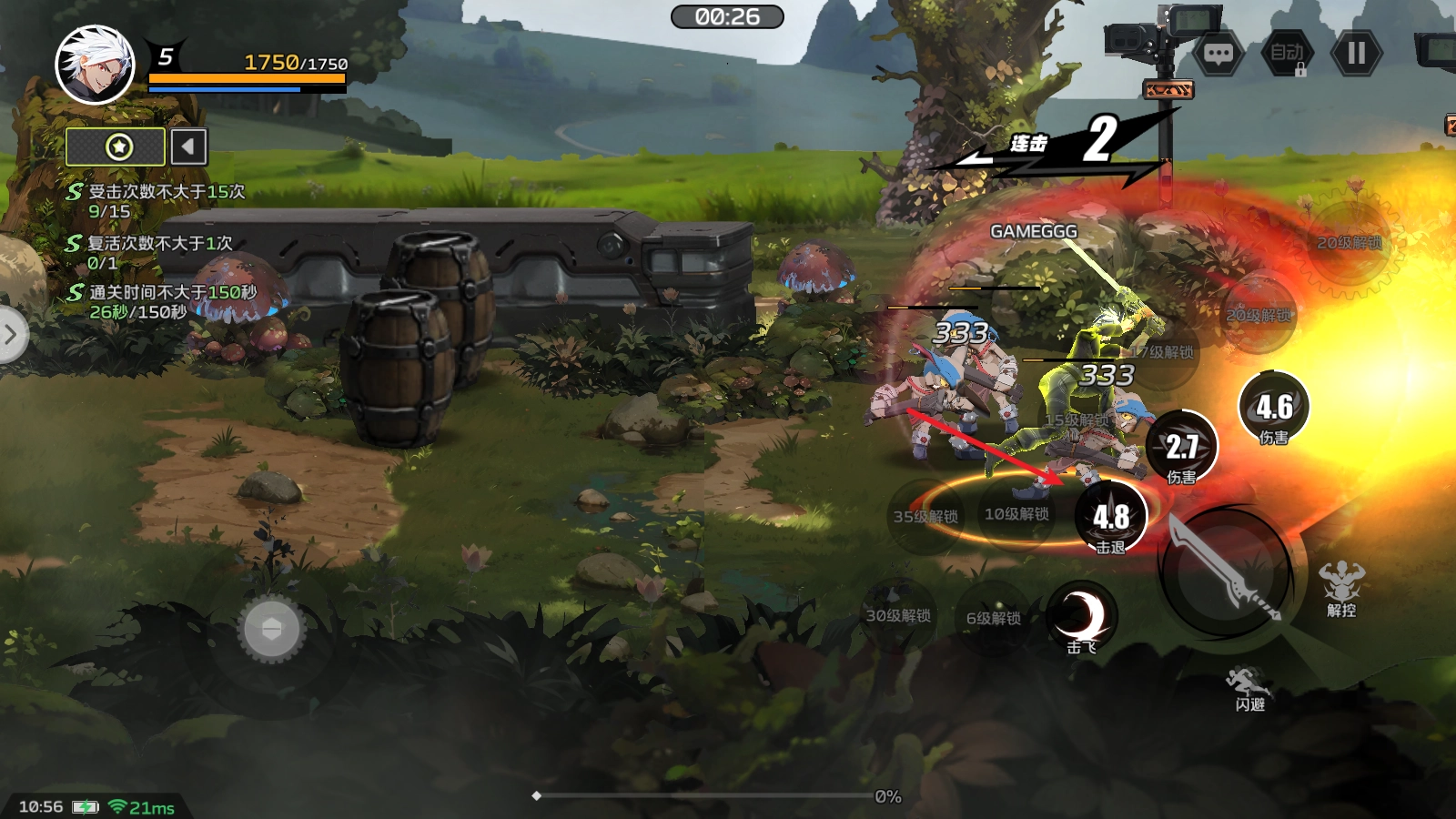 接下来我们就可以进入正式战斗环节了,左边的摇杆用来操控移动,右边的大剑按钮负责发起攻击。