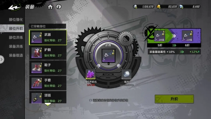 消耗升阶石材料能够对装备部位进行升阶操作,升阶后会按百分比提升该部位所穿戴装备的基础属性(需该部位有装备穿戴时此效果才会生效)。并且在更换装备时,新装备可以直接继承该部位已有的等阶,完全不必担心资源出现浪费的情况。