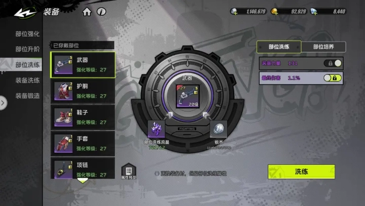 洗炼前能够锁定想要保留的属性,以此追求更极致的效果。此外,还能通过消耗培养石来培养部位洗炼出的词条,提升词条的属性数值;而且部位的强化等级越高,词条可培养的上限也就越高。