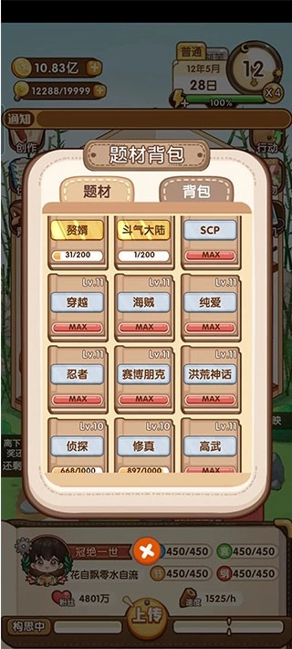 书籍完结时,系统会奖励一部分你创作该书籍所用的题材,因此若想培养某个特定题材,就可以多选择这个题材来进行创作。