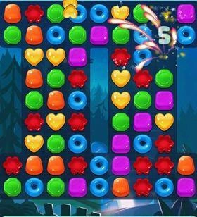 交换相邻两颗糖果的位置,若能让5个同色糖果在同一行或同一列连成一线,就会在交换的位置生成一个特殊效果。要是再次对这个特殊效果进行消除操作,就能清除掉所有与触发该效果的糖果颜色相同的糖果。