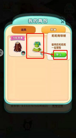 在荣誉板块下就能看到当前穿戴的服装和其他备选服装,只需点击另一套服装,在弹出的小窗口里选择“穿上”即可完成更换。