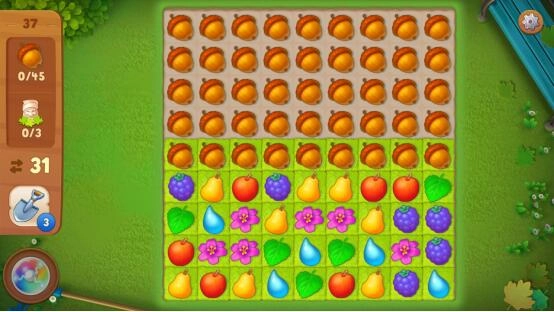 第三点也是最后一点,消除图块的过程中别忽略了积累炸弹资源。一颗炸弹常常能帮我们省下不少步数,还能一次性清理掉大量橡实,这对于后面的关卡来说同样很有帮助。