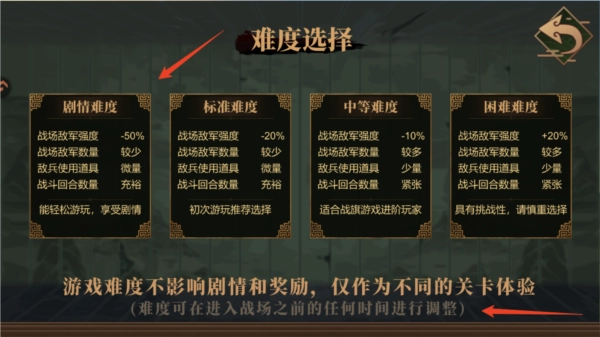 点击新游戏后,便会进入下图所示的界面,这里提供4种难度选项,其中剧情难度是最为轻松的。