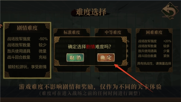 玩家可依据自身需求挑选一个难度,随后点击确定按钮就行。