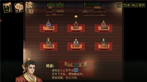 进入游戏后,首先呈现的是一段背景介绍,故事的开端设定在刘备拜卢植为师之时。