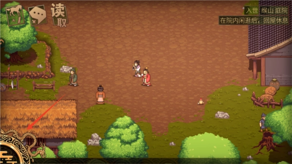 接下来的时间是自由活动,屏幕右上方会显示任务目标,左上方能够读取存档,点击屏幕左侧区域可以进行移动操作。