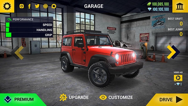 进入游戏的主界面后,从车库中选择一辆越野车。