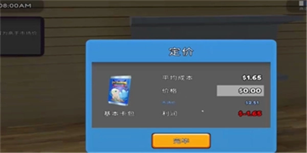 1、进入游戏后,玩家首先需要为自己的店铺进货,作为tcg商店,玩家首要的售卖内容是卡包,可以根据资金去进货。