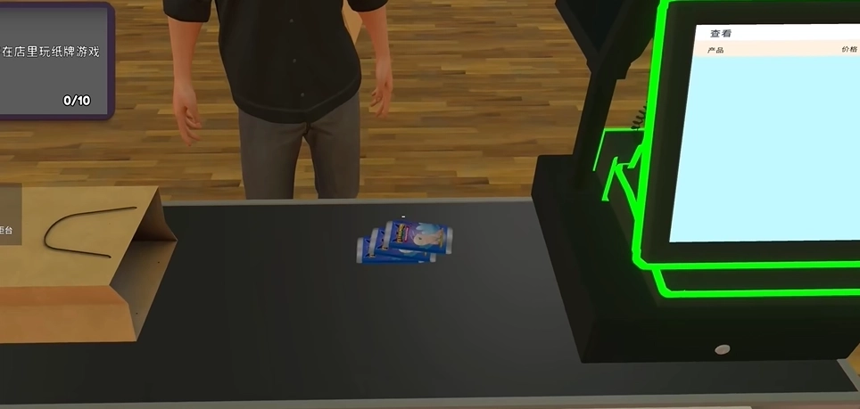 3、客人在选择要购买的卡包后会前往收银台,玩家需要主动为客人进行结账。