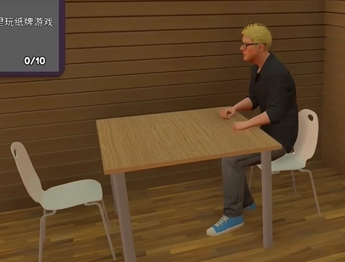 4、部分客人到店后会选择坐在桌前进行等待,如果有其他客人也坐下就会开启卡牌对战。