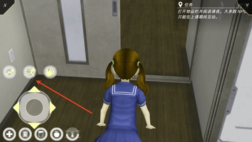 5、进入游戏,左边轮盘可以设置方向、爬行、奔跑、鼓掌等操作;