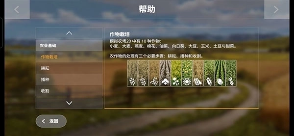 绿色拖拉机是芬特515c,后面有一台播种机,需要玩家自己挂接,操作非常简单,游戏里只需要倒车就可以自动连接了,这里是让玩家熟悉农机的接挂以及播种机的使用,除了部分高端播种机可以实现耕、播、施肥三合一,其他播种机只能在耕好的地上播种,像上面那块茬地,初级的播种机是无法直接作业的。
