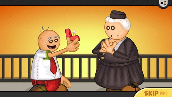 此时会出现一段剧情回顾,让玩家了解自己拥有一家意大利面店的缘由,若不想观看这段剧情,可点击右下角的“SKIP”按钮直接跳过。