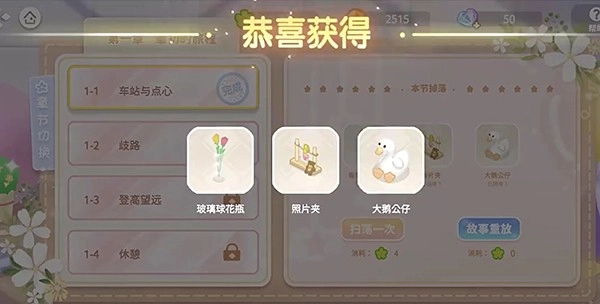 游戏里设有各类剧情关卡,玩家只需点击并消耗4个小绿花,就能开启故事阅读环节。