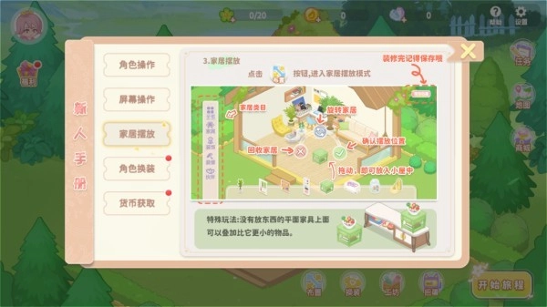 手册还给予了玩家详细的家居摆放操作方式教学。
