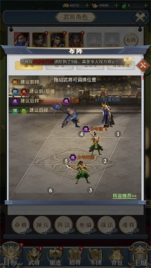在《卧龙无敌》里,到了中后期,武将差不多都能集齐,但前期那些固定武将在阵容搭配方面起着关键作用。除了少数特殊阵容外,通常会选择同阵营“一核多辅”的武将组合,这样做既能明确对战时的输出类型,还能获得高额的额外属性加成,大幅提升战力。