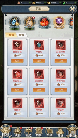 在游戏前期,提升武将等级与突破是增强战力的核心方式。援军和缘分系统里的武将无需投入资源培养,只要获取后作为工具人使用就够了。经验资源可以自由分配,因为后续会解锁熔炉重生功能,能全额返还消耗的经验;到了中后期经验紧张时,优先把资源用在主核武将身上就行。