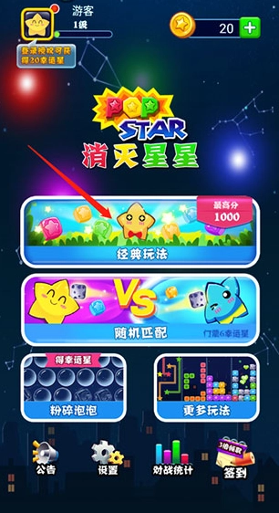 打开消灭星星游戏,选择经典模式。