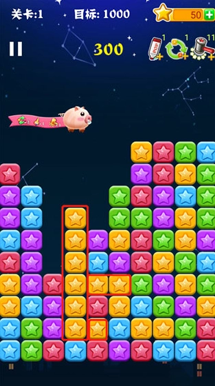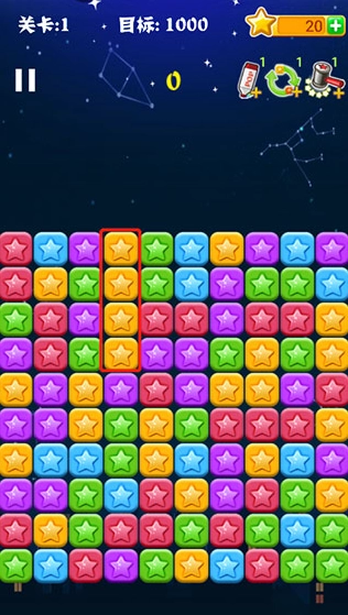 只要是颜色一样的星星连在一起,就可以点击消除。