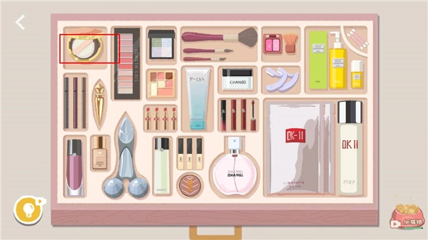将粉扑放入粉饼盒内,盖上盖子放至左上角。