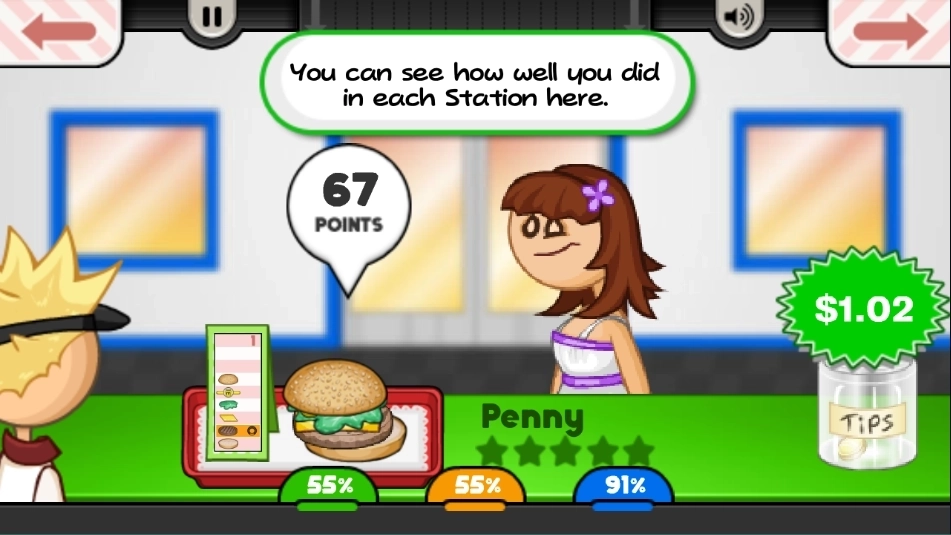 1、游戏的玩法非常的丰富,玩家需要通过自己采买原材料,制作美味的汉堡、薯条、饮料等等的食物来满足用户的需求,赚取更多的金币来解锁更多的道具和食材。同时玩家也可以通过装修、布置店面来吸引更多的顾客前来消费。