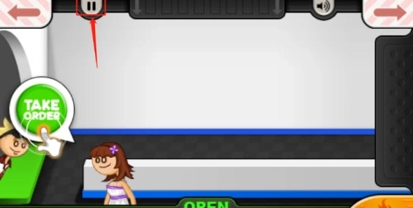 1、在游戏界面点击上方的“暂停”按钮,下图红色箭头指向的地方。