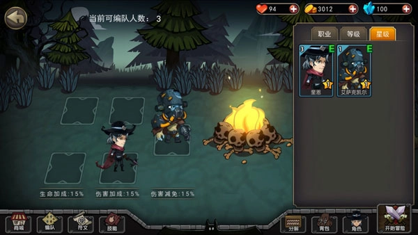 ②前排通常是科学家,最实用的技能当属被动回血,主动技能里则是守护和群伤比较好用。守护技能能让怪物的群体伤害只能攻击他一人(即便闪电链随机选中了他,也只能打他一个),还会附带高额减伤,前期用起来很顺手。到了中后期,大家吸血鬼的技能命中率提升后,怪物基本没机会出手,这时候群伤技能就可以用来打输出了。