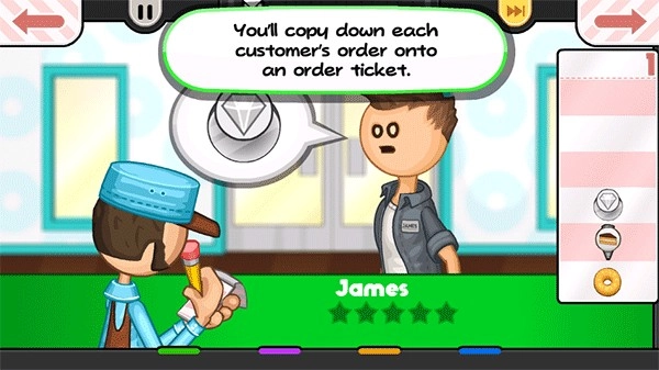 首先玩家要帮顾客完成点餐步骤,等顾客选好自己想吃的甜甜圈品种后,就能着手制作对应的甜甜圈了。