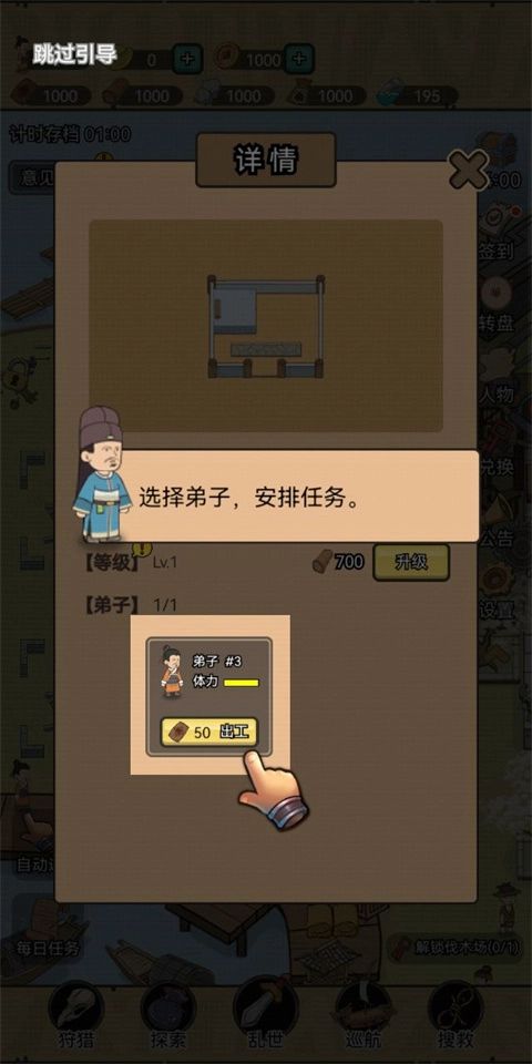 然后选择弟子,安排任务;