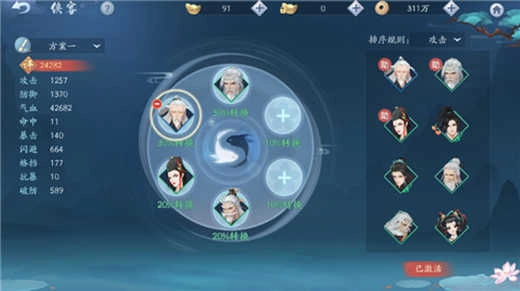 后面的转换位置可以放一些等级不高但能激活更多侠缘的侠客,这样便于后续的羁绊扩展。