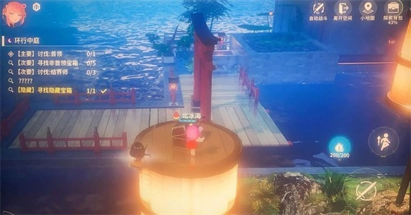 折扇为桥:暗藏的宝箱如图中所示,开启宝箱之后,夜樱庭的小地图上就会标注出转移地标的具体位置。