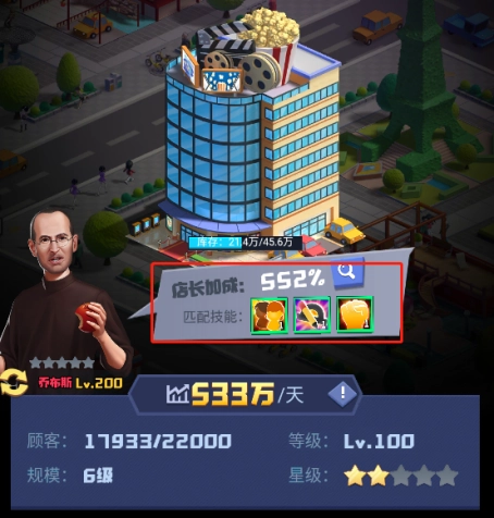 最后要讲的是经营加成,这个数值在前期提升起来并不难,无论是提高店铺等级,还是给店铺安排店长,都能让它有所增长。要是能给店铺配备一位技能匹配度高的资深店长,店铺的经营加成甚至能实现翻倍式的提升。