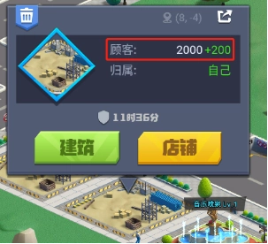 接下来要讲的是店铺接待的顾客数量。每个街区都有对应的顾客数指标,这个指标会随着街区所在区域的等级提升而有所增加,但增长的幅度比较有限,其主要的提升途径是依靠街区周边的各类建筑。简单来说,店铺周边建筑对顾客数量的提升效果越显著,这家店铺所能吸引到的顾客也就会越多。