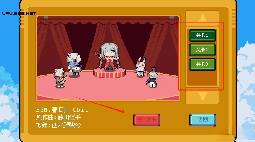 可以从关卡1、2、3里挑选你想挑战的,然后点击“进入关卡”按钮。