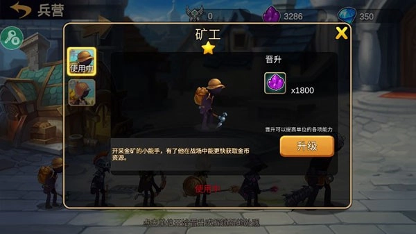 6、矿工:开采金矿的小能手,有了他在战场中能更快的获取金币资源。