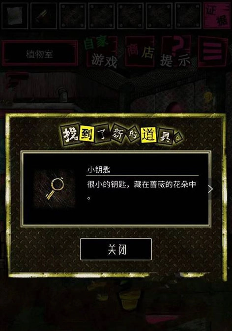 10.回到植物室,用手电照一下花,获得道具“钥匙”